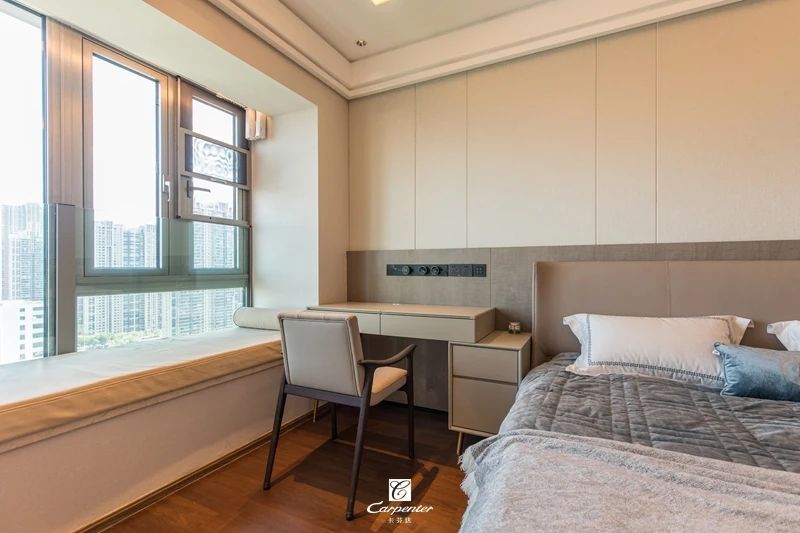 主臥空間以灰白為基調(diào),主打純色空間